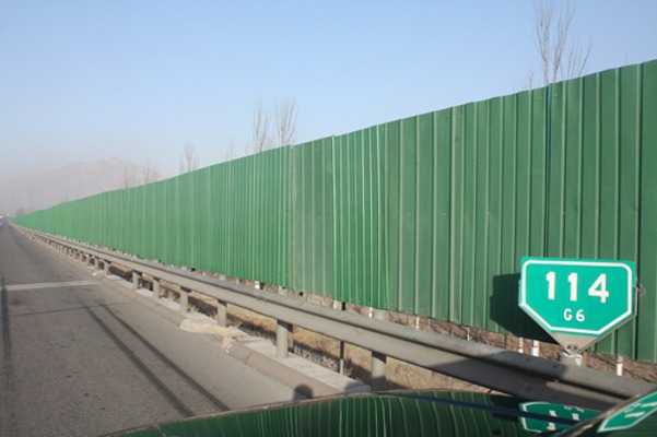 懷來縣新保安鎮(zhèn)前進街新村緊鄰京張高速北側(cè),長期受京張高速行車噪音影響,同時經(jīng)常發(fā)生個別司機翻越護欄進入該村和兒童翻越護欄進入高速公路玩耍等安全隱患。應當?shù)卣螅緵Q定在該路段護欄外側(cè)增設遮擋板。該項目于2010年11月完成立項審批,因工期緊張,經(jīng)研究決定委托石家莊路安交通工程有限公司為施工單位,工期為30天。在公司和施工單位的共同努力下,全部工程于