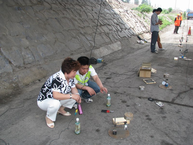 由于荷載試驗(yàn)必須用標(biāo)準(zhǔn)重量的汽車進(jìn)行加載才能測(cè)得詳細(xì)準(zhǔn)確的數(shù)據(jù),需在檢測(cè)期間斷交。為此公司與下花園交通局、交警隊(duì)聯(lián)系溝通,得到他們的大力配合,檢測(cè)時(shí)間安排在車流量較小的中午進(jìn)行。