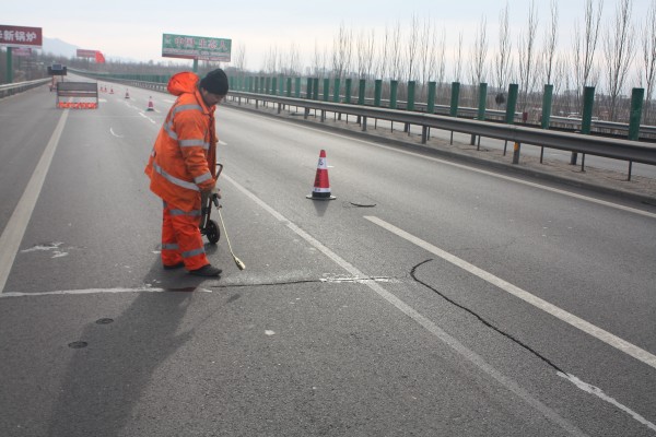 養(yǎng)護工區(qū)開展春季路面灌縫工作